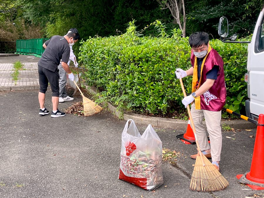 清掃、草抜き、桜の剪定、追肥の作業を行います。
