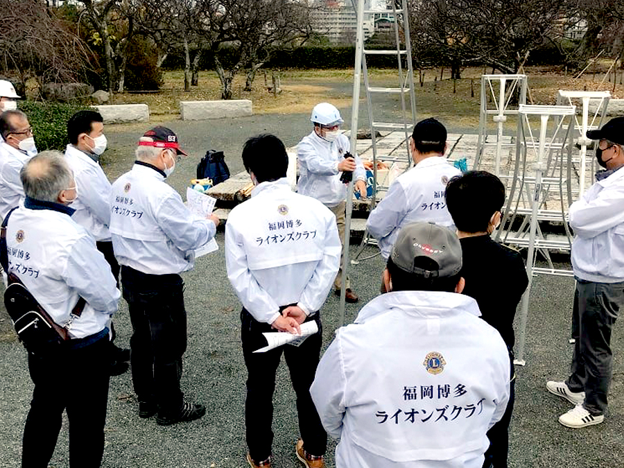 福岡博多ライオンズクラブでは、福岡市のラブアアースの清掃活動の一環で南公園の清掃や桜の木剪定、舞鶴公園の梅の木の剪定や小児ガン支援のレモネード販売活動。青少年育成を目的に少年ラグビーチームの草ヶ江ヤングラガーズ、若獅子旗なぎなた大会支援などを行っています。