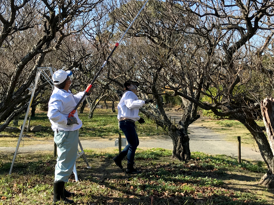 当クラブ所属の造園業を営むライオンメンバーのプロの方々にご指導いただき梅の木を剪定・手入れ・植樹を行っています。