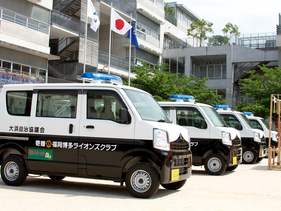 博多小学校・中学校自治協議会へ青色燈パトロールカー4台贈呈